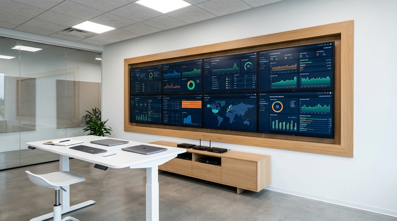 4×2 video wall using LG professional panels with Chief mounting infrastructure for precision alignment and serviceability. Centralized visualization for monitoring, operational awareness, and decision-making.