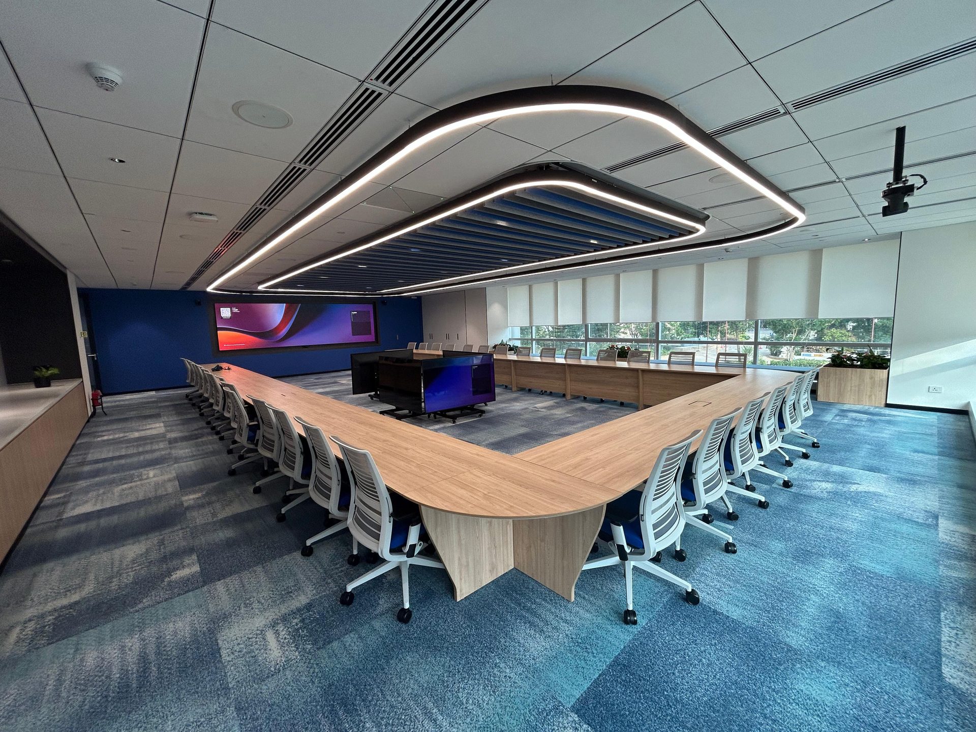 Ideas Ahead assembled an internal team to guide Amadeus through a comprehensive design process. The objective was to amplify the "wow factor" by transitioning from traditional projectors and LED screens to expansive, high-definition video walls. Additionally, cutting-edge cameras and microphones were recommended that significantly outperform earlier models, offering superior performance and quality. The goal was to ensure compatibility with all major video conferencing platforms, including Zoom, Teams, Google Meet, and future technologies.